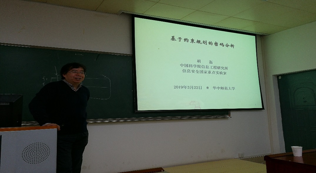 3月23日,首都师范大学葛根年教授、中科院信息工程研究所林东岱研究员、胡磊研究员应邀来访公司,在公司201报告厅为师生分别做了题为“Perfect Splitter Sets”,“一个基于KPK问题的数字签名算法”以及“基于约束规划的密码分析”的学术报告。