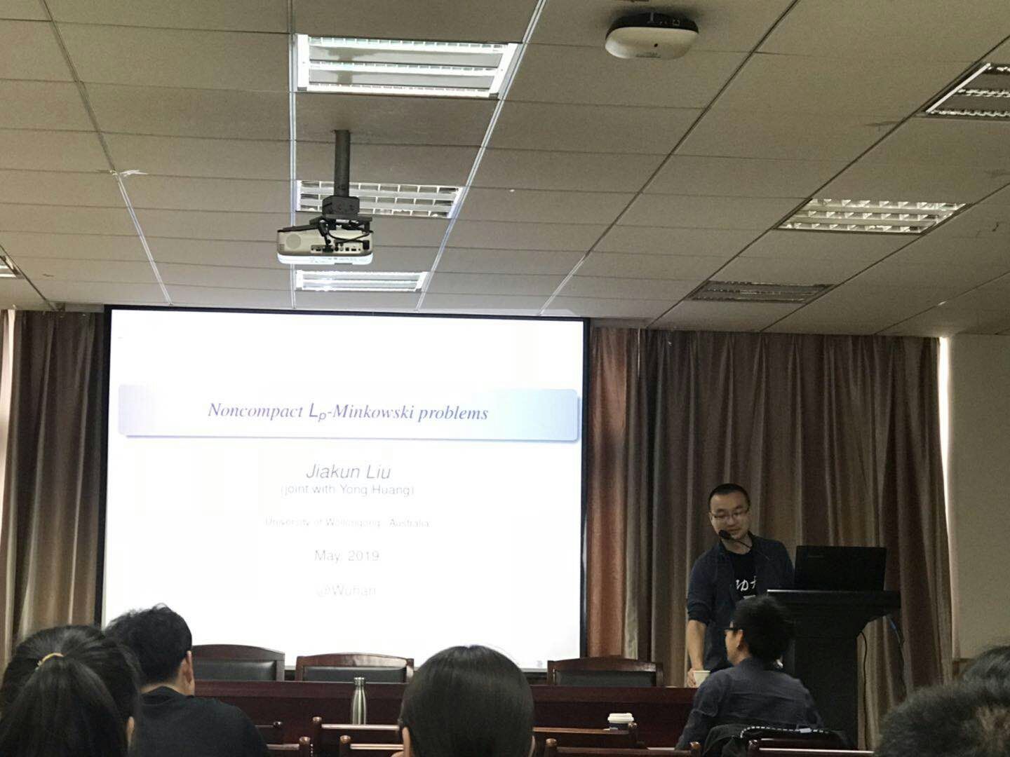 2019年5月13日上午,澳大利亚Wollongong大学刘佳堃应邀来访公司,并为相关专业的教师与研究生做了题为“Noncompact Lp-Minkowski problems”的学术报告。