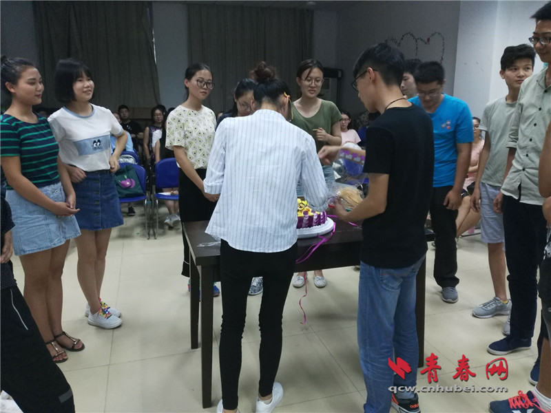 9月13日晚在学工办的教室里,“但愿人长久,千里共婵娟”熟悉的旋律不断的回响着。在黄卓的主持下,经过了“你划我猜”和“你说我记”两轮游戏,联谊进入了尾声。在掌声和此起彼伏的“生日快乐”中,耿博坤等16个员工围着蛋糕站在一起。他们纷纷拿起蜡烛插在蛋糕上,点燃后一口气吹灭。在灯火熄灭时,又爆出了一阵掌声和欢呼:“来分蛋糕咯!”