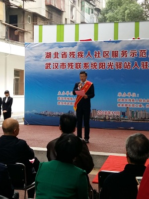 11月3日,公司志愿者协会主席罗成辉携公司五名员工志愿者赴武昌区徐家棚街,参加湖北省残疾人社区服务示范点授牌暨武汉市残联系统阳光驿站入驻启动仪式。