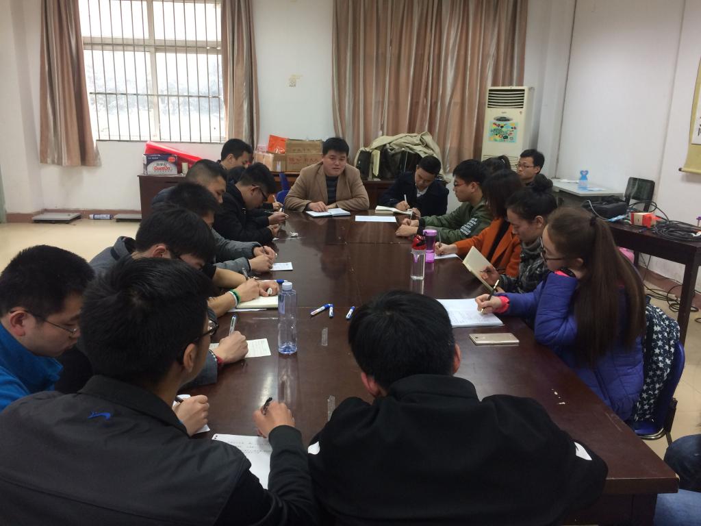 周杰和马荣两位老师首先就新学期开学之初的各项工作进行了布置,提出了具体的工作要求。针对新学期的班级管理和建设,14级、15级班长和团支书依次对在本班建设管理过程以及班级日志的使用中出现的问题进行了交流和讨论。大家针对本班实际情况,发表了很多建设性的意见和建议。