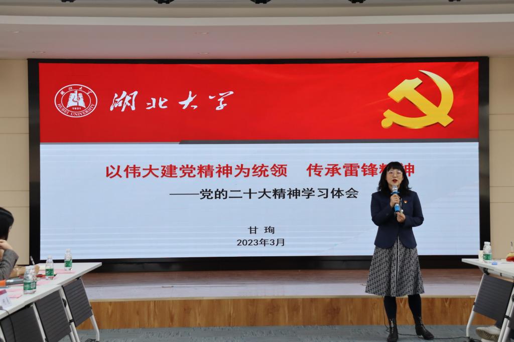 全体成员以视频形式集中学习习近平总书记对深入开展学雷锋活动的重要指示,深入了解60年来雷锋精神的卓越成效和永恒价值。学工部部长甘珣“以伟大建党精神为统领,传承雷锋精神”为题讲授微党课,从信仰、价值、力量、品德等四个方面深入阐释了雷锋精神与建党精神的密切联系,并结合青年先进典型,与现场师生就雷锋精神的时代内涵开展情真意切地交心谈心,带领与会人员细致学、深入学。