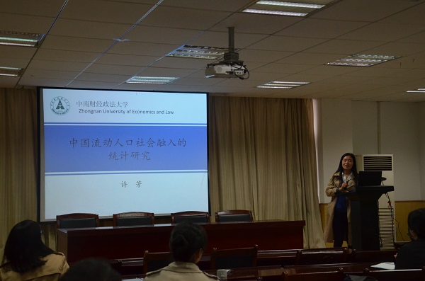 付星博士报告了近期与他人合作完成的关于齐型空间上的Hardy空间小波理论方面的工作。许芳博士主要介绍基于国家卫生和计划生育委员会组织实施的《流动人口动态监测调查问卷》数据,对中国流动人口社会融入问题进行全面、系统的统计研究。基于个体层面对社会融入指数作回归分析。