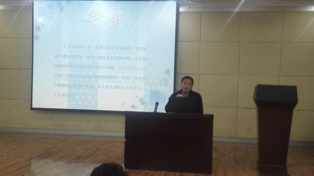 祝处长从他近些年从事校园安全保卫工作的经验和事例谈起,为大家分析了目前校园中经常性发生的安全事件的类型、特点以及发展趋势,为大家讲解了目前校园安全面临的同以前不一样的挑战。在讲座的最后,他为大家提出了很多建议,希望同学们能够提高安全意识,时刻注意自身安全。