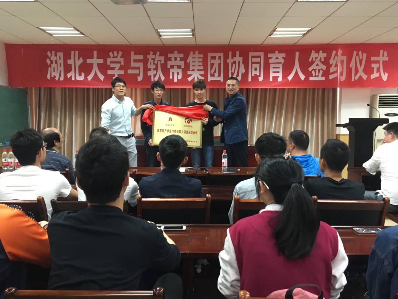 5月11日上午,williamhill中文官网与软帝集团协同育人签约仪式在公司201报告厅举行。软帝集团董事长李杰先生、集团董事长孙海南先生、williamhill中文官网教务处副处长李其锋、williamhill威廉希尔官网领导及师生代表出席了本次签约仪式,仪式由软帝集团杨莹女士主持。