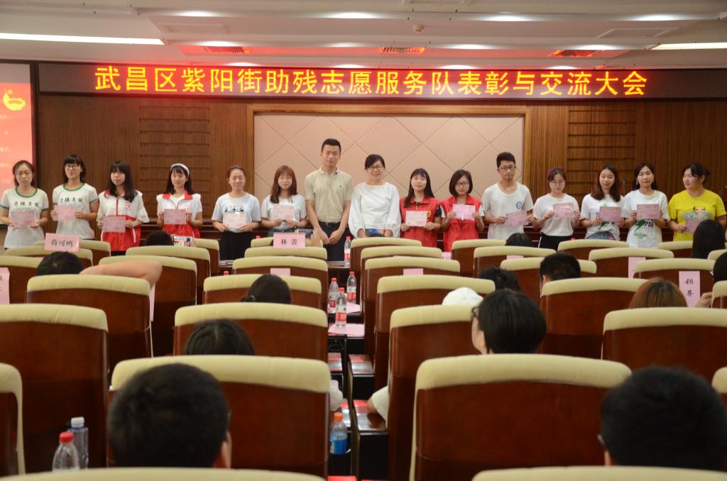 全国第28个助残日到来之际,5月19日,williamhill威廉希尔官网暖阳志愿服务队紫阳街分队全员在williamhill中文官网数学与统计学公司党委副书记陆伟和williamhill威廉希尔官网团委书记周杰的带领下赴华中师范大学参加武汉市武昌区紫阳街阳光家园2017~2018年度的表彰大会。