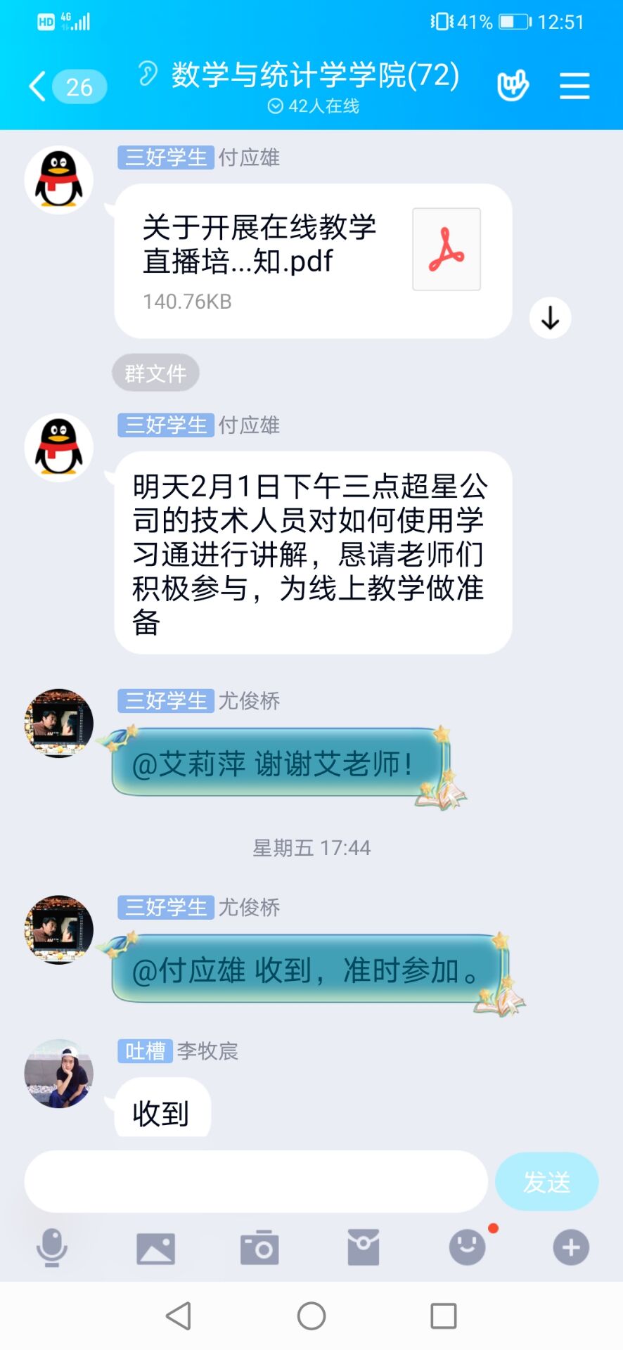 针对员工,公司要求班主任、导师及时了解本科生、研究生状况,实行“一日一报”。对未能回家的员工,与其家人密切沟通,随时掌握员工身体状况。公司还及时将《williamhill中文官网关于延迟2020年春季开学时间的通知》《关于进一步做好研究生导师疫情防控工作的通知》等文件传达到每一位师生,确保人人知晓。根据公司统一要求,公司组织教师积极准备在线授课,督促导师对员工毕业论文早关注,严格把控论文质量,确保员工学业不受疫情影响。
