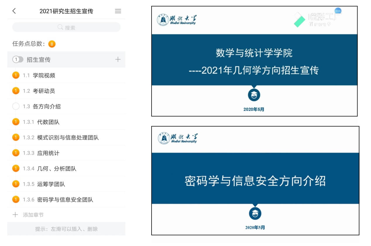 此次研究生招生宣传对象精准、内容精准、过程精准。公司组织各个研究方向的负责导师,精心录制该方向宣传讲解视频,包括代数团队、模式识别与信息处理团队、应用统计团队、几何分析团队、运筹学团队、密码学与信息安全团队,通过学习通平台,供全体员工观看了解。同时,老师们以不同的方向建立员工交流班级,供同学们在群里讨论学习。员工们普遍反映,此次研究生招生宣传方向明确、内容明晰,在充分了解公司公司产品模式之后,能够和导师们在线交流,报考公司研究生的意愿大大增加。目前公司90%以上的考研员工都已观看了视频介绍。