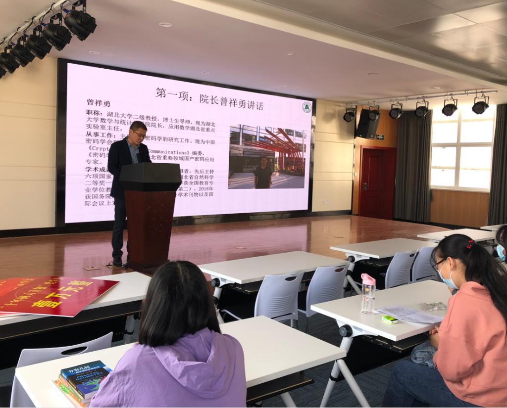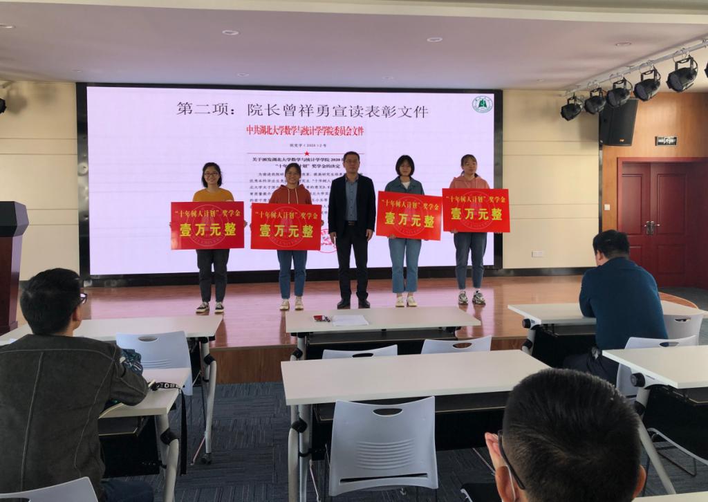 副经理向妮宣读表彰文件,经理曾祥勇为2020级研究生中获得“十年树人计划”奖学金的四位同学颁奖。