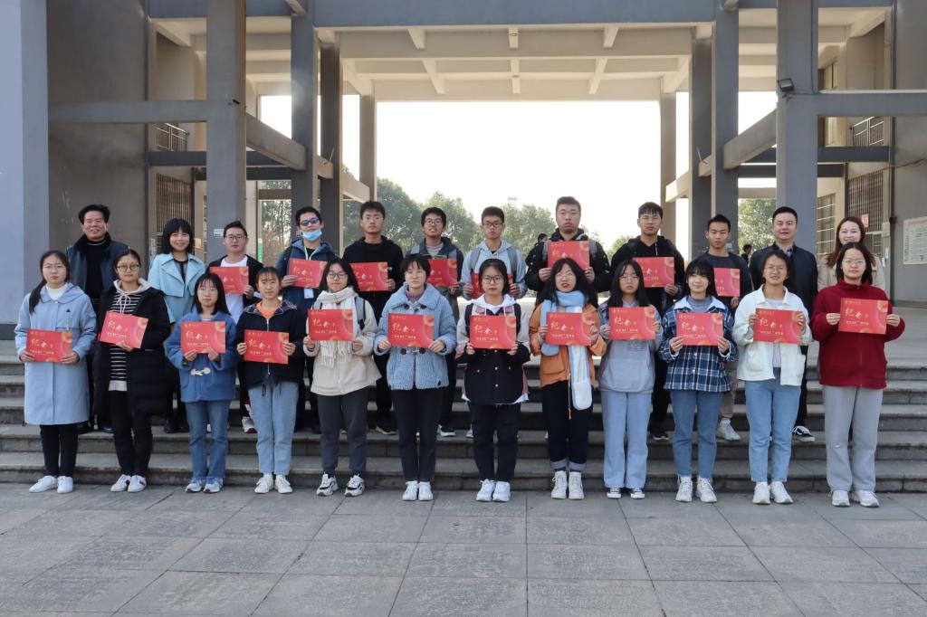 活动现场,团委书记周杰宣读了《关于颁发方冰等20名2021级本科生“纪念忠仁”助学金的决定》。随后,参会领导老师为在场的员工颁发了助学金纪念卡。红色纪念卡上的短短几行寄语,包含了公司和老师对他们殷切的期盼。