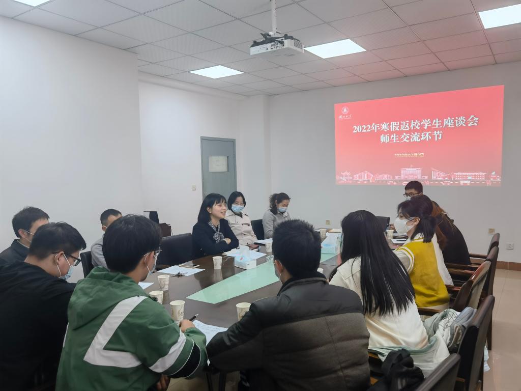 为推动“一线员工工作法”走深走实,加强师生之间的联系与交流,进一步了解员工思想动态、交流假期见闻和感受,更有针对性地做好新学期员工思想政治教育工作,williamhill威廉希尔官网于2022年3月9日在205会议室召开寒假返校员工交流座谈会。公司党委副书记何肖、信息与计算科学系主任彭江涛老师、数学与应用数学系主任廖军老师、应用统计系主任刘展老师、教学办老师张凌、学工办老师陈慧以及员工代表等参加会议。