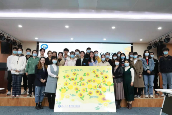 陈琴副部长为向日葵志愿服务队代表授章,她表示一枚小小的向日葵勋章饱含了大大的期望,服务队要立足“芯宠辅导站”,为同学们解决生活、学业等各方面的需求。员工代表上台认养向日葵,柳珺珺老师和何肖老师为其发放认养证书并合影留念。
