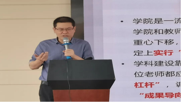 经理曾祥勇以《对标“双一流”建设,聚力高质量发展》为题做主题报告。他深度分析了国家“双一流”的建设内涵,通过对比目标院校分析差距,围绕数学学科、网络空间安全学科发展现状找准短板弱项,进一步明确未来发展方向。